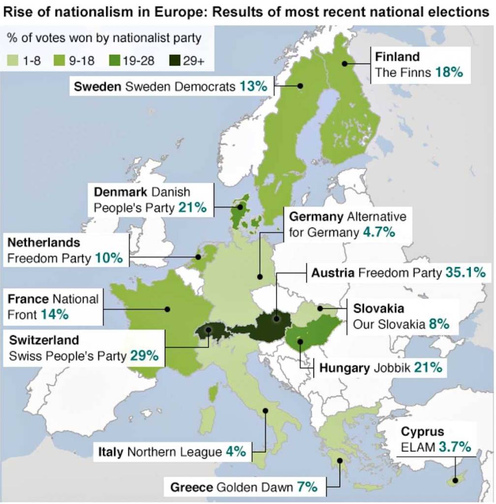 ABD’nin yanı sıra Avrupa’da ırkçılık, ırk ayrımcılığı ve yabancı düşmanlığının yayıldığı görülmektedir. Özellikle Almanya, Fransa ve Danimarka ırkçılığın yükseldiği ülkelerdir. Avusturya ve Belçika’da etnik ayrımcılık, aşırı sağ ve Neo-Nazi faaliyetleri artmış ve yabancı düşmanlığı yükselişe geçmiştir. Benzer şekilde İngiltere, İspanya ve Portekiz’de de İslamofobi ve yabancı düşmanlığı artmaktadır.